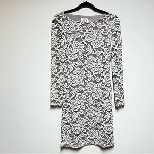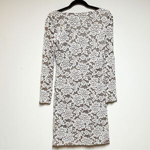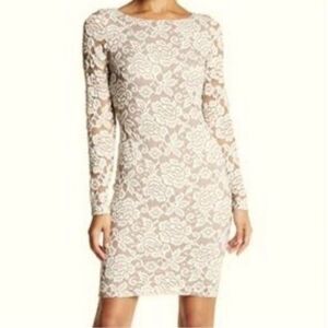 Eliza J Lace Dress Overlay Sheath Dress Beige Taupe Long Sleeve Formal Size 6