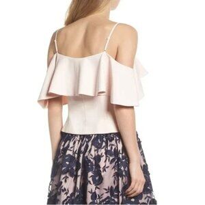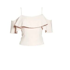 A flouncy, ruffled, popover neckline dresses up a playful cold-shoulder top that's sure to make a statement.