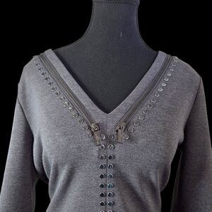 Eliza J by Karl Lagerfeld Paris Knit Gray Dress With Rivet And Zippers Size 8