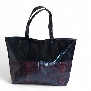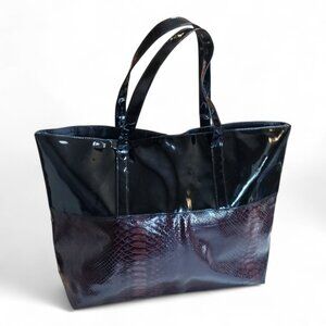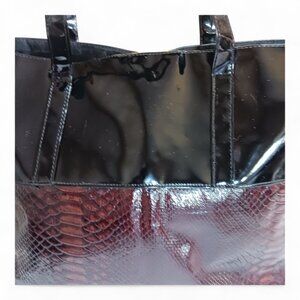 Elizabeth Arden tote, large shoulder bag, patent leather-look purse, reptile embossed handbag, office tote, two-tone shopper bag