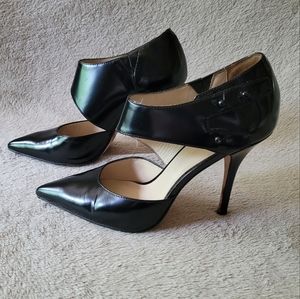 Elizabeth and James Blk Leather Stilettos