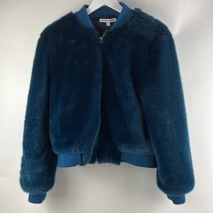 Elizabeth and James Ellington Blue Faux-Fur Bomber Jacket