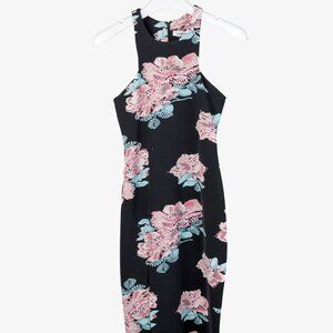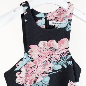 Elizabeth and James Leya Black-Multi Floral Bodycon Midi Dress