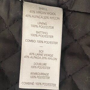 Elizabeth and James 3/4 length wool jacket in size small. Beautiful black wool blend (40% wool, 40% alpaca, and 20% nylon) with sturdy front zip and zip pockets. Jacket is fully lined, has a collar, and inside wrist cuffs for warmth.