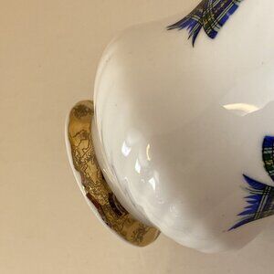 Enjoy your tea in style with this elegant Nova Scotia Tartan Tea Cup and Saucer set. Made of fine bone china, this vintage set features the iconic provincial tartan pattern in white and blue hues. Perfect for all occasions, this commemorative piece holds 6-8 ounces of your favorite hot beverage. Whether you're a collector or simply looking to add a touch of Canadian charm to your tableware collection, this set is sure to impress with its original Nova Scotia branding and timeless design. Cheers to a cuppa in true Canadian fashion!