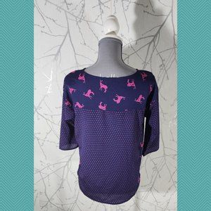 Ella Moss Purple Polkadot Deer Printed Blouse