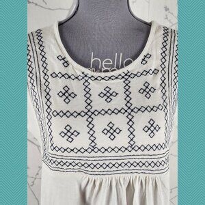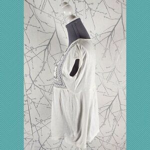 Ella Moss White Embroidered Cotton Modal Blend Flowy Tee