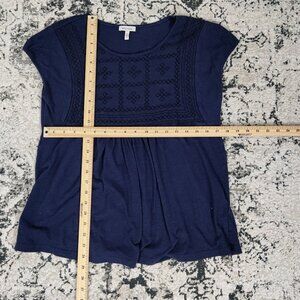 Ella Moss Women's Blouse Size M Blue Cotton Modal Embroidered Summer Lightweight