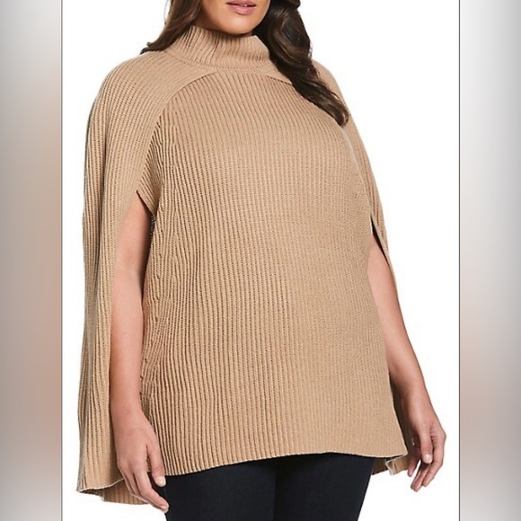 Ella Rafaella Plus Rib-Knit Poncho Sweater 1X-2X