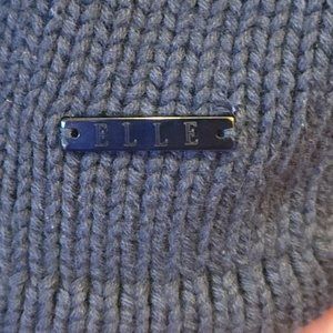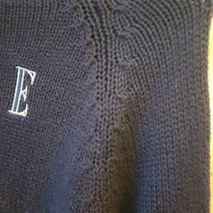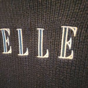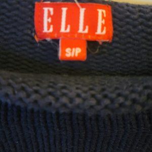 Elle, EUC, Size S, 100% cotton, navy blue knit sweater, cropped styling, branding embroidered in white on front.