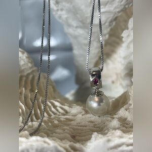 #ElleJewelry #SterlingSilver #VintageStyle #PearlPendant #Elle925 #PoshFinds #ElegantStyle #RubyDetail #BoxChain #MinimalChic