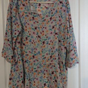 This light blue-gray Elle blouse has a button closure in the back. In excellent used condition.