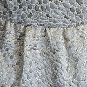 Style tags: gold, sheer, tear drop, pattern, conservative, cute, picnic, outing, evening, event, prom, shiny, flowy, comfy, mini, metallic, cream, illusion, NWT