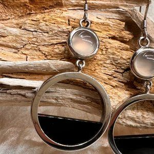 Elle 925 sterling silver and rodium plated (so you never have to polish), dangle hook earrings. Black onyx looking, with whie moonstone looking accents.