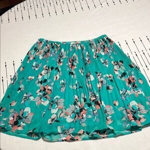 Elle Green Pleated Floral Skater Mini Skirt. Size 8
