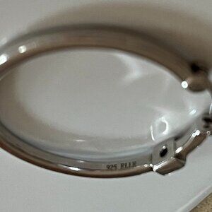 Lovely sterling silver hoops with clasp and signature ruby stone detailing. Elle Jewelry that belonged to my mother. Stamped 925. I have other pieces from this same line, so if you see something you like, make a bundle!