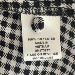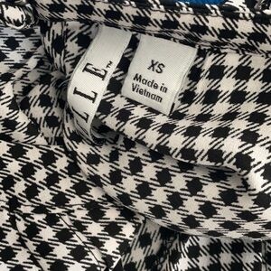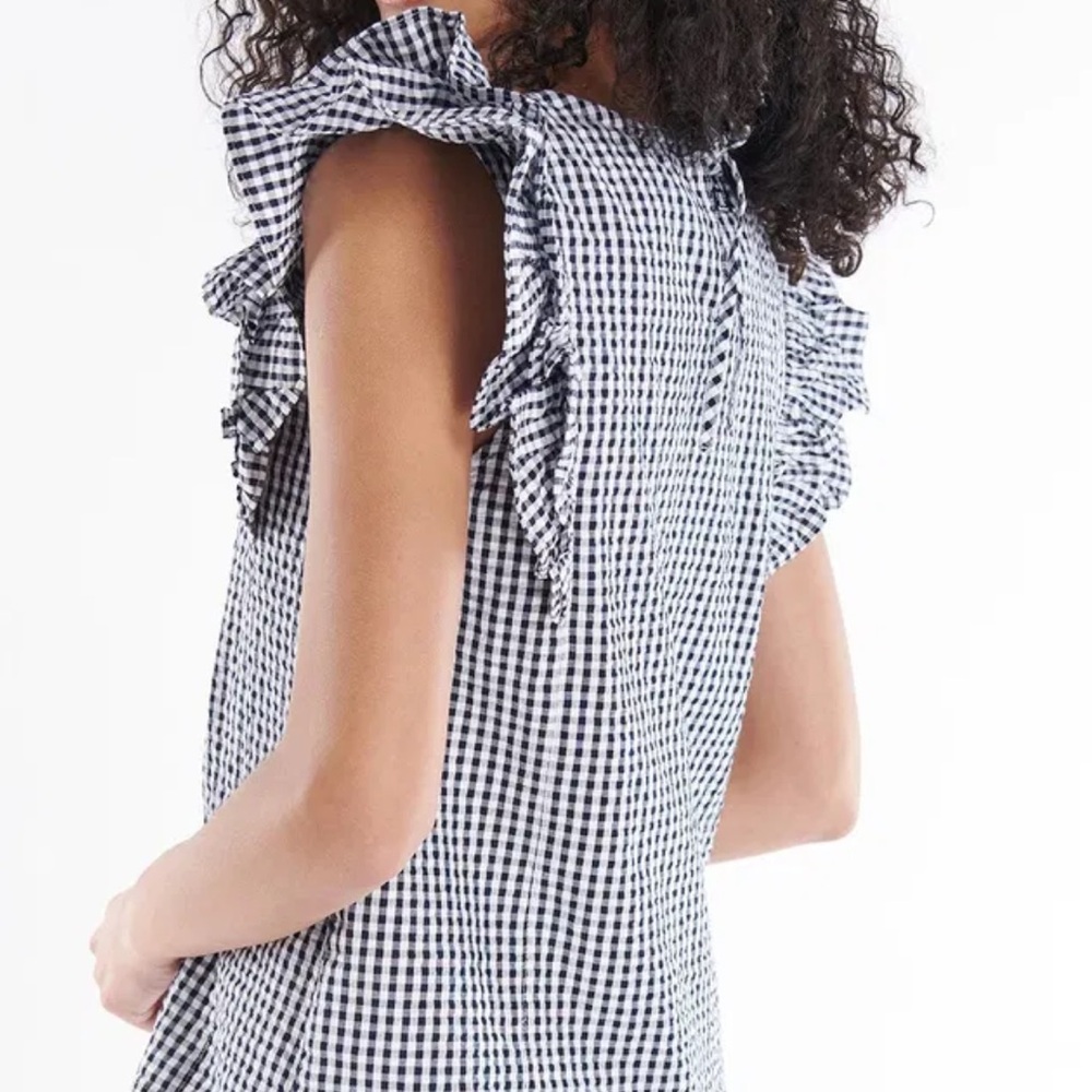 This elegant blouse from Elle features a classic black and white color scheme with charming ruffled details along the sleeves.