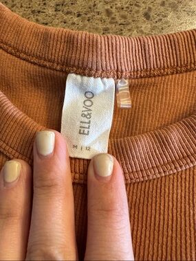 Sleeveless ribbed tank in a warm rust hue. Soft knit fabric with a fitted silhouette. Simple crew neckline for easy layering. Casual staple for everyday outfits.