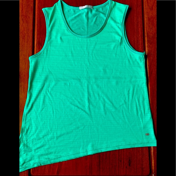 Workout tank top with tie up diagonal edge. Size small 95% polyester 5% elastane