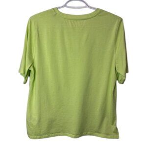 A lime green crew neck t-shirt from the brand Elle. It features a classic, casual T-shirt style with a crewneck neckline. The fit is described as relaxed, providing extra room for movement and breathability, making it suitable for both casual, everyday wear and being "on the move".