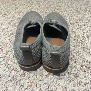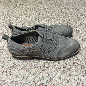 Picturing a pair of comfortable grey casual slip on loafer style shoes with elastic laces by Ellen Degeneres in a womens size 7. comfortable casual everyday shoes.