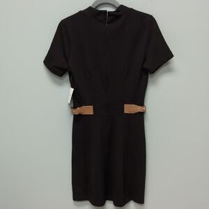 Ellen Tracey Belted Short Sleeve Fit & Flare Dress. Size Small. Brown. NWT