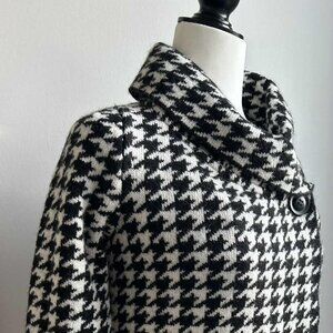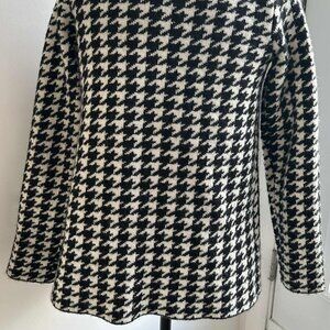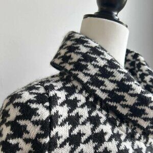 Ellen Tracy Black & White Houndstooth Foldover Collar Swing Knit Jacket – US S