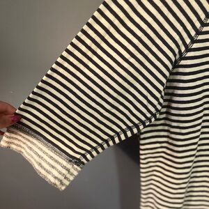 Stylish black and white striped top perfect for casual outings. Comfortable and chic design.