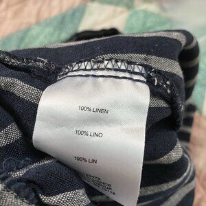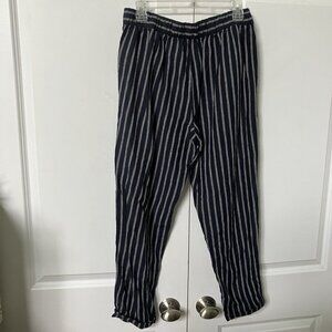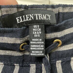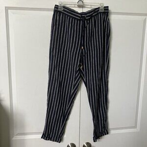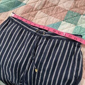 Ellen Tracy Linen Pants Womens S Blue Stripe Cropped Coastal Drawstring Boho