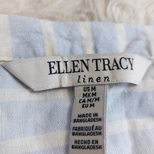 Check out this Ellen Tracy Linen Women's Light Blue Striped Sleeveless Tank Top in excellent pre-owned condition, no rips no stains on it.