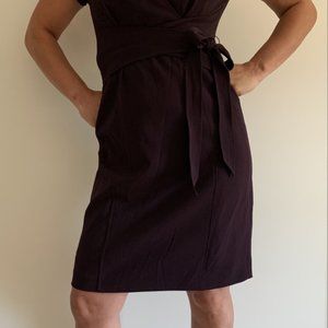 Ellen Tracy purple stretch faux wrap knee length pencil dress with bronze zipper up the back and back slit. Gently used. Size 8