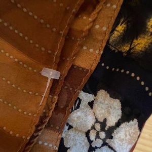 EUC beautiful silk scarf with colours of copper, black, cream and red by designer Ellen Tracy. Silky soft and light as a cloud. All border stitching on scarf is in perfect condition. Measures approximately 33” x 33” square.