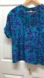 Ellen Tracy Vintage silk blouse, short sleeve rear buttons, blue-green & purple