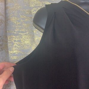 - Gorgeous black sleeveless tank to detailed with front gold zipper .soft and comfy to wear
