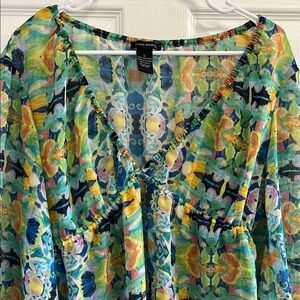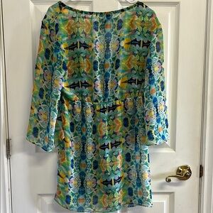 Ellen Weaver Sheer Colorful Floral Tunic Dress