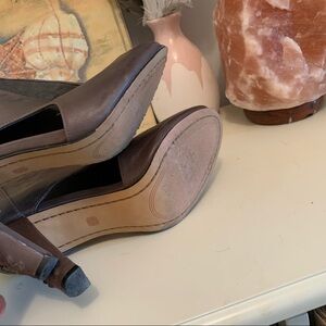 Elliott Lucas brown leather Allesandra woven open toe shoes