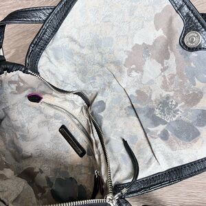 Magnetic front closure with a pocket, the main area does have a zipper for added security.