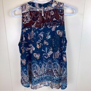Elodie Boho Paisley Navy Burgundy Sleeveless A-Line Swingy Blouse Tunic Top sz M