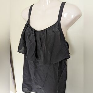 Eloise black silk ruffled sleeveless top large