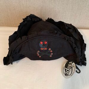 Elope NEW Pirate Skull & Bones Pirate Hat with jeweled skull and bones decor with patches and stitches on the side with a fun pirate tattered edge trim.