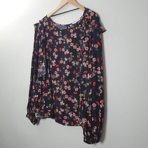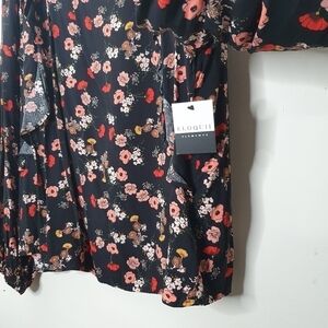 Brand New With Tag Eloquii Elements Black Floral Print Top Size 20 Ruffles on Top with elastic cuffs on sleeve