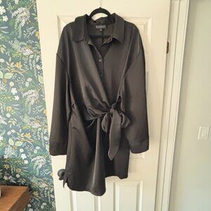 Sexy black Eloquii mini dress with robe-style sleeves and tie waist. Fit is flexible because of how the garment ties at the waist; I found it quite generous and worked great at multiple sizes, just was shorter when tied tighter. In excellent used condition; only worn for one Valentines day party. I found one pictures from the Eloquii website and included it here. Great dress for date night, valentines, or anytime you want to feel a lil frisky but not too risky.