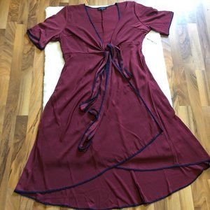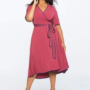 Eloquii True Wrap Dress with Piping Detail *Burgundy Midi Dress size 20