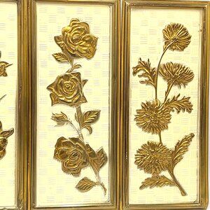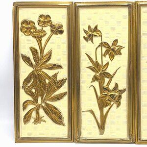 Elpec Brass Plaques-Floral Designs-14.75 In x 6.625 In. x4 Mid Century England