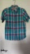 Ely shirt, in very good condition - light wash wear. Casual style with pearl clasp snap closure, short sleeves, lightweight cotton fabric, blue and pink plaid print. Marked size small.