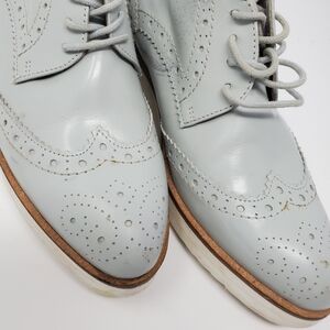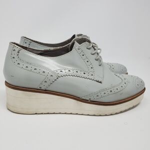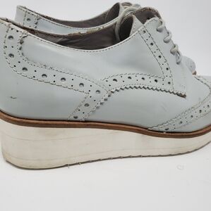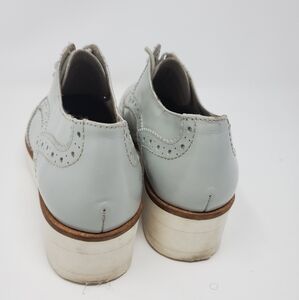 Classic gray-ish blue leather oxford with oriental details and white platform, giving it just the right twist to make it a pair you couldn't get enough from.