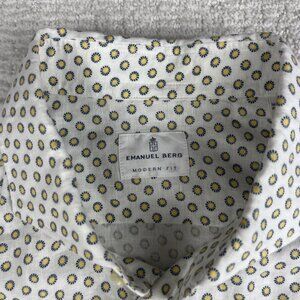 Emanuel Berg Casual Button Down Shirt Size 44 17.5 XL White / Blue Floral Hippie