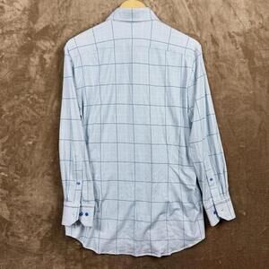 Emanuel Berg Modern Fit Checkered Dress Shirt Men M/L Blue White Stretch Soft