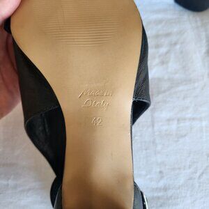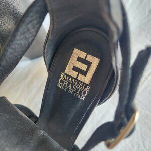Emanuele Crasto Womenβs Black Leather Sandals Ankle Buckle 42 10.5 EUC