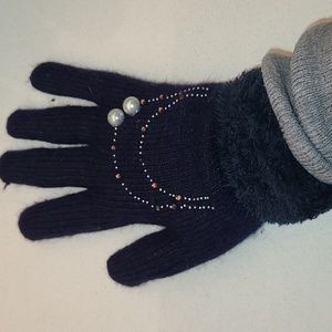 Embellished knit gloves